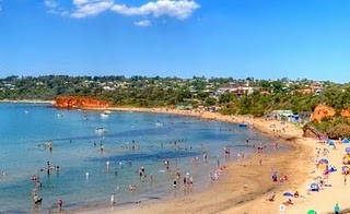 LEARN BLOGGING.CIRCULAR BEACH ATTENDED BY PEOPLE. |